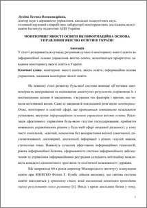 - Лукіна, Т.О. (2007) The monitoring of education quality as an information basis of education quality management in Ukraine Педагогічна і психологічна науки в Україні (2). pp. 134-144.