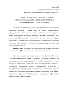 - Коваль, Т.І. (2010) The particularities of distance learning technologies at higher school In: All-Ukrainian scientific-practical conference "Osvitologia - scientific direction of integrated educational cognition”, 2010 р., м.Київ, Україна.
