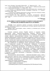 - Грітчина, А.І. (2012) Особливості формування готовності юнаків шкіл-інтернатів до виконання ролі сім’янина In: Сучасний виховний процес: сутність та інноваційний потенціал: матеріали звіт. наук.-практ. конф. Ін-ту проблем виховання НАПН України за 2011 рік , 1 (2). Типовіт, м. Івано-Франківськ, Україна, pp. 137-139.