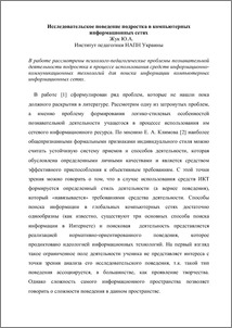 The work is devoted to psychologo-pedagogical problems of teenager's cognitive activity at use of resources of information-communicative technologies for information search in information computer networks.