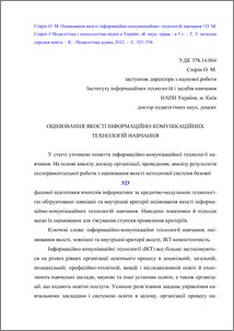 - Спірін, О.М. (orcid.org/0000-0002-9594-6602) (2012) Quality Assessment Of Information And Communication Technologies Training Педагогічна і психологічна науки в Україні: в 5 т. – Т. 3: загальна середня освіта, 3 (5). pp. 323-324. ISSN ISBN 978-966-644-212-6