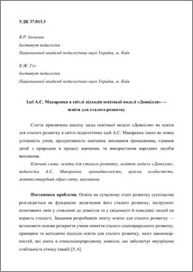 The article is devoted to analysis of educational model “Dovkillya” as education for sustainable development in the context of A. Makarenko’s pedagogical ideas such as complete successiveness of pupils, productivity of education, the upbringing of a citizen, cooperation of pupils and nature during studying, the usage of folk means of upbringing.