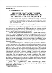 У статті розкривається сутність участі дітей в житті суспільства й ухваленні рішень, особливості прояву суб’єктності дитини, зміст участі дітей на різних рівнях та умови, що забезпечують ефективність такої діяльності.