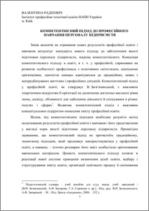 - Радкевич, В.О. (2012) Компетентнісний підхід до професійного навчання персоналу підприємств Професійна освіта: педагогіка і психологія, XIV (XIV). pp. 277-287.