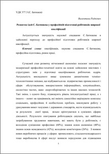 - Радкевич, В.О. (2011) Development of S. Batyshev’s ideas concerning vocational training of qualified workers Професійно-технічна освіта, 4 (4). pp. 11-14.