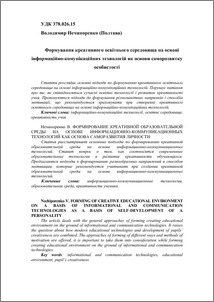 The article deals with the general approaches of forming creating educational environment on the ground of informational and communication technologies. It raises the question about how modern educational technologies and development of pupils’ creativeness are combined. The approaches of forming of different ways and methods of motivation are offered, it is important to take them into consideration while forming creating educational environment on the ground of informational and communication technologies.
