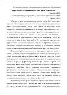 - Барладим, В.М. (2014) Information support non-formal education of children and youth Научно-периодическое издание Международный научно-практический конгресс психологов и педагогов: “The generation of a new stage” . pp. 77-82. ISSN 9785437903186