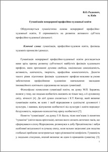 - Радкевич, В.О. (2010) Humanizing of continuous professionally-artistic education Безперервна професійна освіта в контексті європейської інтеграції: теорія, досвід, прогноз, 2 (1). pp. 148-155.