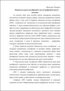 - Радкевич, В.О. (2010) Національна рамка кваліфікацій в системі професійної освіти і навчання професійно-технічна освіта, 2 (2). pp. 9-11.