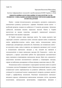 - Барладим, В.М. (2014) Information and communication technologies as a means of social competence in school education of adolescents Збірник матеріалів І Всеукраїнської науково-практичної конференції молодих учених "Наукова молодь-2013". pp. 172-180.