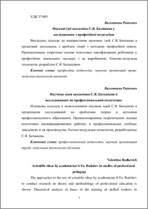 - Радкевич, В.О. (2010) Scientific ideas by academician S.Ya. Batishev in studies of professional pedagogy професійно-технічна освіта, 4 (4). pp. 20-23.