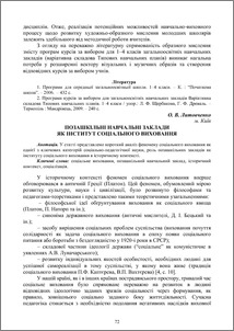 - Литовченко, О.В. (2012) Позашкільні навчальні заклади як інститут соціального виховання In: Сучасний виховний процес: сутність та інноваційний потенціал Матеріали звіт. наук.-практ. конф. Ін-ту проблем виховання НАПН України за 2011 рік (2). Типовіт, м.Івано-Франківськ , Україна, pp. 72-75.