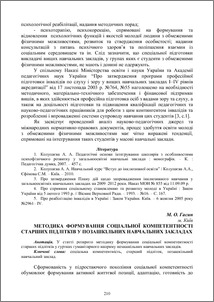 - Гасин, М.О. (2012) Методика формування соціальної компетентності старших підлітків у позашкільних навчальних закладах In: Сучасний виховний процес: сутність та інноваційний потенціал Матеріали звіт. наук.-практ. конф. Ін-ту проблем виховання НАПН України за 2011 рік (2). Типовіт, Івано-Франківськ , pp. 210-213.