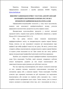 У публікації розглядається застосування відеосервісу Youtube для організації колекцій електронних освітніх ресурсів з профорієнтаційними матеріалами, які використовуються у профорієнтаційній роботі вчителів природничо-математичних спеціальностей.