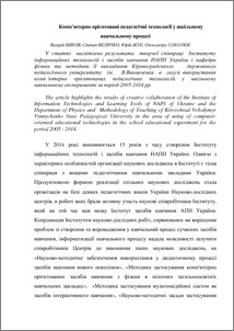 - Жук, Ю.О., Биков, В.Ю., Величко, С.П. and Соколюк, О.М. (2014) Компьютерно ориентированные педагогические технологии в школьном учебном процессе Наукові записки, 5. pp. 3-8.