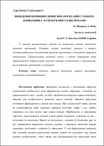 The article analyzes approaches to the value concepts and value orientations defining. The main trends were disclosed, which have been discovered during the pilot study of senior preschoolers' value orientations in communication. The following objectives were formulated in order to increase the level of mutual relations formation between senior preschool children and their peers as well as their value orientations in communication.