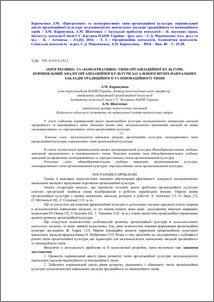 - Карамушка, Л.М. and Шевченко, А.М. (2014) Progressive and conservative types of organizational culture: a comparative analysis of organizational culture of secondary educational institutions of traditional and innovative types Актуальні проблеми психології : зб. наукових праць Інституту психології імені Г.С. Костюка НАПН України. – Т. І : Організаційна психологія. Економічна психологія. Соціальна психологія, 1 (40). pp. 15-20. ISSN 2072-4772