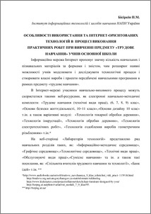 Використанням Інтернет-технологій в процесі виконання практичних робіт на уроках трудового навчання характеризується урахуванням аспектів методичного, практичного та організаційного змісту, як передумови активної інтеграції в інтернет-простір, використовуючи ІКТ й Інтернет-технології.