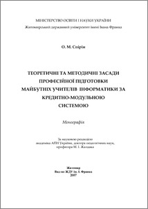 - Спірін, О.М. (orcid.org/0000-0002-9594-6602) (2007) Теоретичні та методичні засади професійної підготовки майбутніх учителів інформатики за кредитно-модульною системою Project Report. Вид-во ЖДУ ім.І.Франка, м. Житомир, Україна.