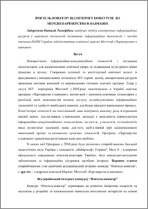 - Задорожна, Н.Т. (2011) Innovative Teachers from online competition to the Microsoft «Partners in Learning" Матеріали Сьомого всеукраїнського конкурсу "Вчитель - новатор": методичний посібник для вчителя. pp. 15-21.