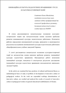 - Ігнатович, Олена Михайлівна (2011) Іnnovative culture teaching staff in line with the cultural-historical theory Institute for Gifted Children. pp. 1-10. ISSN 2309-3935