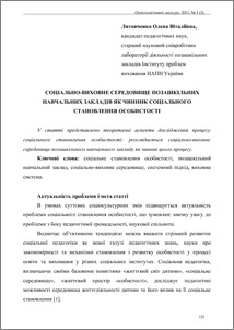 - Литовченко, О.В. (2011) Social and Educational Environment of Out-of-school Educational Institutions as a Factor of Social Forming Освітологічний дискурс: наукове електронне видання, 1 (3). pp. 121-133. ISSN 2312-5829