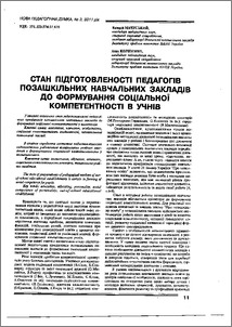 - Корнієнко, А.В. and Мачуський, В.В. (2011) Стан підготовленості педагогів позашкільних навчальних закладів до формування соціальної компетентності в учнів Нова педагогічна думка , 3. pp. 11-13.