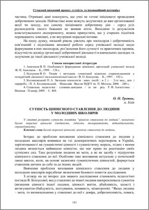 У статті розкрито сутність поняття “ціннісне ставлення до людини”, визначено базові моральні цінності (людяність, гідність, толерантність, відповідальність, справедливість).