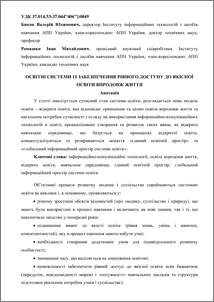 - Биков, В.Ю. and Ромашко, І.М. (2008) Systems of education on maintenance of equal access to quality education for lifelong learning Інформаційні технології і засоби навчання , 4 (8). ISSN 2076-8184