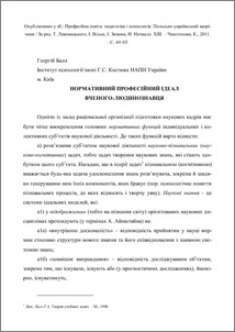 - Балл, Георгій Олексійович (2011) The normative professional ideal of a human scientist Професійна освіта: педагогіка і психологія: Польсько-український щорічник, 13. pp. 49-65.