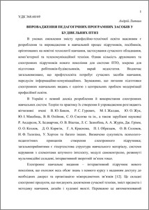 The article generalizes the results of pedagogical research on the usage of pedagogical programmatic means in vocational schools of a building type with the purpose of the development of professional competence, activization of the professionally oriented educational activity of future specialists and the formation of their informative abilities. The author reveals the ways of introduction and perspectives of usage of electronic educational editions in skilled workers’ training.
