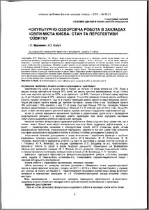 - Маринич, В.Л. and Когут, І.О. (2013) Фізкультурно-оздоровча робота в закладах освіти міста Києва: стан та перспективи розвитку Актуальні проблеми фізичної культури і спорту, 1 (26). pp. 73-78. ISSN 2221-7959