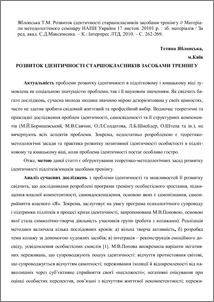 - Яблонська, Тетяна Миколаївна (2010) Development of identity seniors with means of training Матеріали методологічного семінару НАПН України. pp. 262-269.