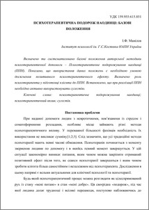 - Манілов, І.Ф. (2014) Psychotherapeutic travel alone: basic principles Збірник наукових праць Інституту психології імені Г.С. Костюка НАПН України (10). pp. 184-196.