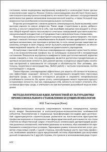 | Keywords: | методологическая идея личностной культурадигмы, профессиональное становление, групповая рефлексия, культурадигма, групп-рефлексивный подход, субъект профессиональной деятельности, ресурс, неотрефлексированный образ |