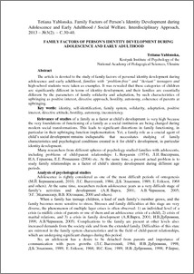 - Яблонська, Тетяна Миколаївна (2013) Family Factors of Person’s Identity Development during Adolescence and Early Adulthood Social Welfare. Interdisciplinary Approach, 2 (3). pp. 30-40. ISSN 2029-7424