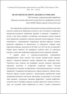 - Сліпчишин, Л.В. (2014) How to organize creative activity of the vocational schools’ students Vocational Education , 1. pp. 50-53.