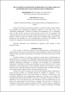 | Keywords: | Information and communication competence, skills, training of future preschool teachers. |