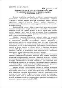 Пізнання історії педагогіки України як цілісного явища неможливе без поглибленого об’єктивного дослідження педагогічного минулого. Особливого значення набуває вивчення вітчизняного досвіду видатних українських педагогів-музикантів, багатого своїми традиціями й досягненнями і який став вагомим внеском у розвиток не лише вітчизняної, а й світової культури.