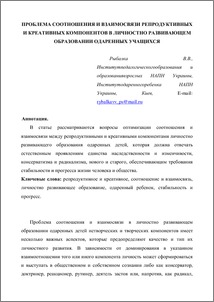 The article deals with the optimization of the relationship between reproductive and creative components of personality and developmental education of gifted children, which should respond to the natural manifestations of the unity of heredity and variation, conservatism and radicalism, new and old, providing the requirements of stability and progress of human life and society.