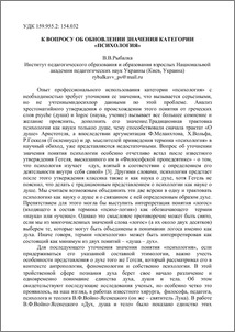 Опыт профессионального использования категории «психология» с необходимостью требует уточнения ее значения, что вызывается серьезными,но не учтенными до сих пор данными по этой проблеме.
