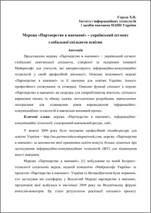 - Середа, Х.В. (orcid.org/0000-0002-4510-7173) (2011) «Partners in Learning Network» is the Ukrainian segment of global association of teachers Науковий часопис. Серія 5, 28. pp. 223-227.
