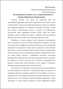 - Сліпчишин, Л.В. (2013) Realization of the following of general and professional preparations in vocational schools In: Соціальне партнерство як інструмент оновлення змісту професійно-технічної освіти . Інститут ПТО НАПН України, м.Кривий Ріг, Україна, pp. 146-149. ISBN 978-617-7104-00-0