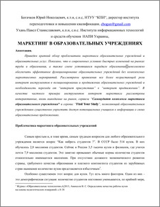 - Богачков, Ю.М. and Ухань, П.С. (2014) Marketing in educational institutions Освітні технології, 2. pp. 66-79.
