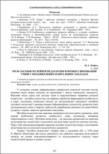 - Любич, О.І. (2014) Роль засобів музейної педагогіки в процесі виховання учнів у позашкільних навчальних закладах In: Сучасний виховний процес: сутність та інноваційний потенціал: матеріали звіт. наук.-практ. конф. Ін-ту проблем виховання НАПН України за 2013 рік , 4 . НАІР, м. Івано-Франківськ, Україна, pp. 287-289.