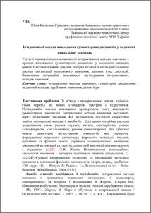 - Колісник-Гуменюк, Юлія Ігорівна (2010) Interactive methods of teaching humanitarian disciplines in medical colleges Modern information technologies and innovative methods of teaching in preparation of specialists: methodology, theory, experience, problems, 24. pp. 169-173.