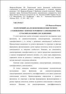 | Keywords: | self-constitulation, self-determination, self-estimation, self-efficiency, self-consciousness |