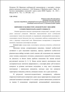 - Петренко, Ірина Володимірівна (orcid.org/0000-0002-5900-0852) (2013) Вивчення особливостей самоконтролю у школярів з різним рівнем навчальної успішності Проблеми освіти : Наук. зб. / Інститут інноваційних технологій і змісту освіти МОН України , 2 (74). pp. 199-206.