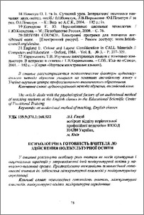 - Голуб, Л.І. (2012) Psychological readiness of teachers to implement multicultural education Psychological and pedagogical problems of teaching actions, 1 (12). pp. 78-86. ISSN ISBN 978-067-05-0017-5