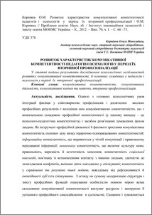 - Корніяка, Ольга Миколаївна (2012) Розвиток характеристик комунікативної компетентності педагогів і психологів у період їх вторинної професіоналізації Проблеми освіти (70 (1)). pp. 66-73.